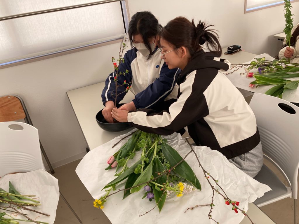 1月から2月にかけ、2年生が生け花体験をしました。